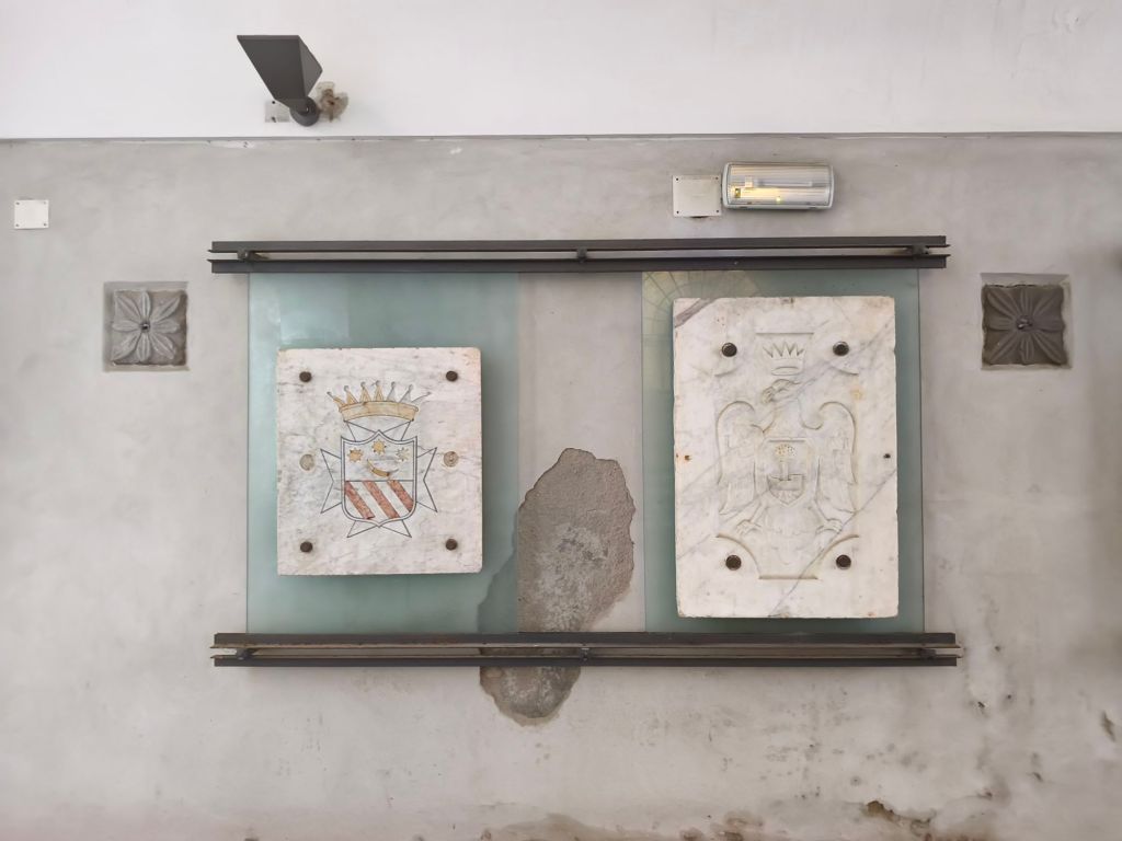 - stemmi: uno raffigura una bussola alata, l’altro è lo stemma della città di Salerno