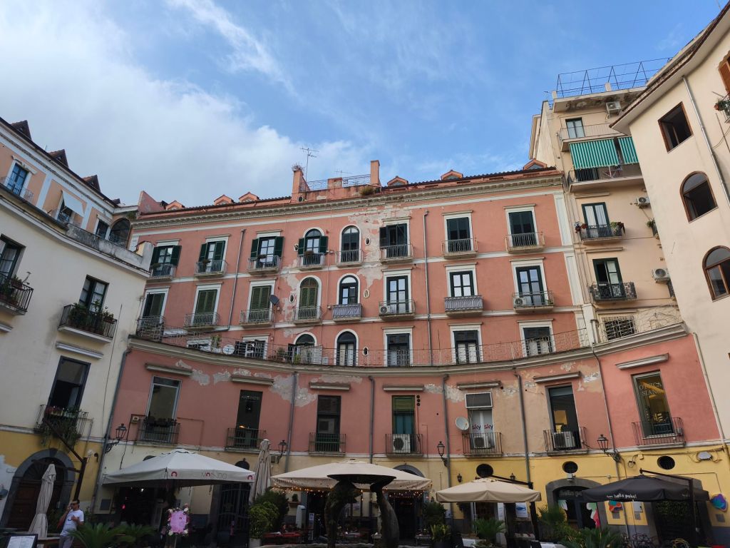 C’è una cosa che ho imparato viaggiando: le piazze più belle non sono sempre quelle grandi e affollate. A volte, i luoghi più speciali si trovano dove meno te lo aspetti. È proprio così che ho scoperto Piazza Matteo D’Aiello, nel cuore antico di Salerno — un piccolo angolo di quiete e bellezza, incastonato tra i vicoli del centro storico come una gemma segreta. Appena entri in Piazza Matteo D’Aiello, hai l’impressione di essere finita in una scena di un film neorealista italiano: case color pastello, panni stesi al sole, anziani seduti a chiacchierare e bambini che giocano. E nel mezzo… un silenzio che sa di pace, interrotto solo dal rumore lieve dei passi o da qualche voce che arriva da una finestra aperta. Non troverai bar alla moda né locali affollati — e proprio per questo ti sembrerà ancora più autentica.