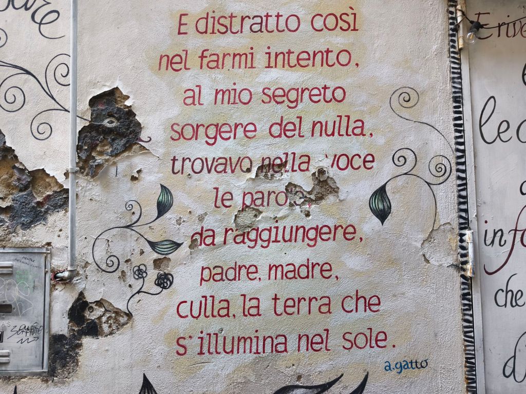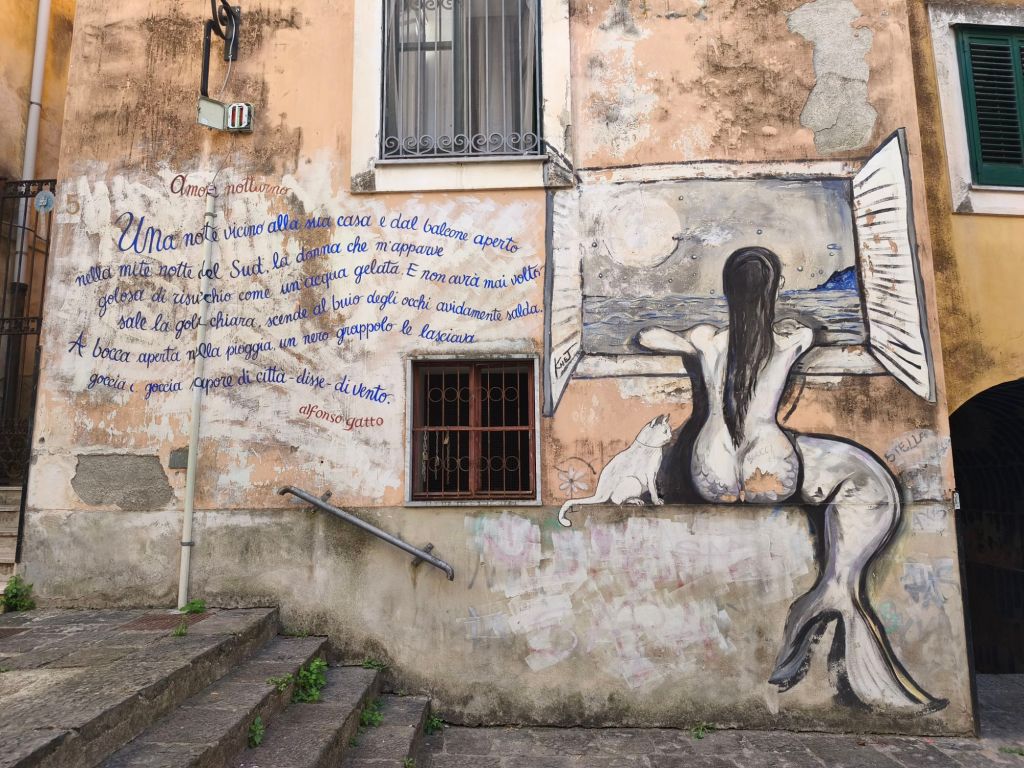 Se c’è una cosa che amo fare quando visito una città, è perdermi tra le sue strade senza una meta precisa. Ed è proprio così che, camminando nel centro storico di Salerno, ho scoperto qualcosa di straordinario: i Muri d’Autore. Cosa sono? Una vera e propria galleria d’arte a cielo aperto, sparsa tra i vicoli più autentici della città vecchia. Murales che non sono solo belli da fotografare, ma che parlano, raccontano storie, emozioni, tradizioni e personaggi salernitani… con il linguaggio colorato e potente della street art contemporanea. I Muri d’Autore sono nati da un progetto che coinvolge artisti, scrittori, poeti e cittadini. L’idea è semplice e geniale: trasformare i muri delle case, spesso anonimi o trascurati, in opere d’arte narrativa, ispirate alla cultura, alla memoria collettiva e al vissuto del quartiere. Camminando per via Trotula de’ Ruggiero, via Portacatena, o via Masuccio Salernitano, ti ritrovi circondatə da versi poetici, ritratti di personaggi storici, figure mitologiche o simboliche, tutti legati in qualche modo a Salerno. Ogni muro ha la sua anima.