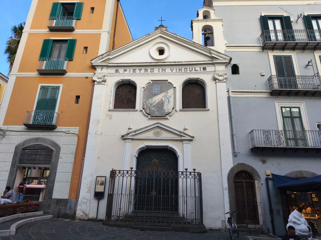Il suo nome significa “San Pietro in catene”, un richiamo al famoso episodio della liberazione miracolosa dell’apostolo Pietro, imprigionato a Roma. Appena entri, ti avvolge un’atmosfera intima, antica, quasi mistica. Qui il tempo sembra essersi fermato. La luce entra morbida dalle piccole finestre, riflettendosi sulle pietre nude e consumate dal tempo, creando giochi di chiaroscuro che sembrano opera d’arte. La chiesa è a navata unica, semplice ma elegantissima nella sua sobrietà romanica.
