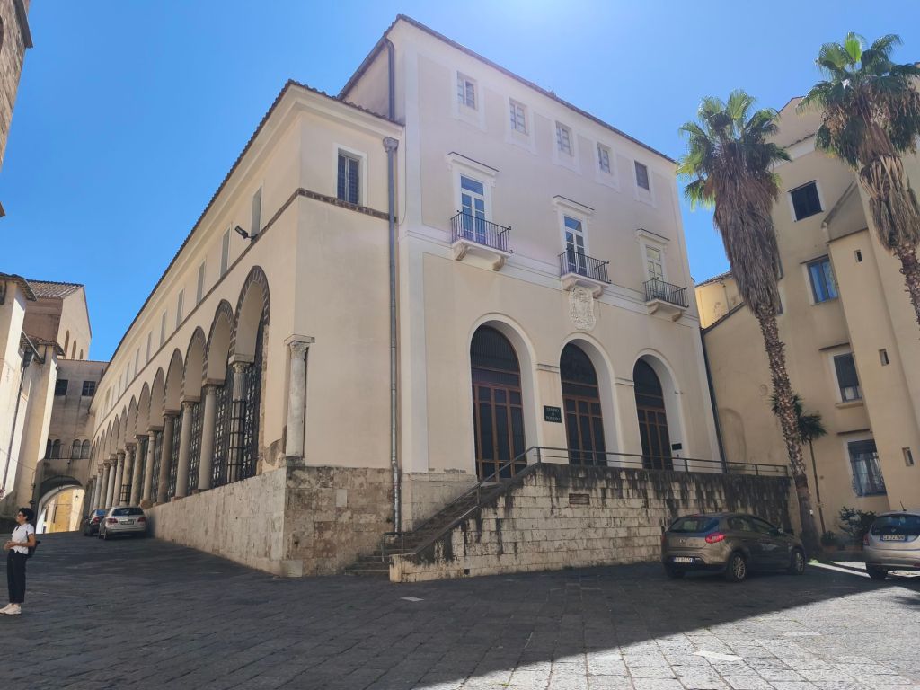 Costruito tra il XIII e il XIV secolo, Palazzo Fruscione fu la dimora di una nobile famiglia salernitana. L’edificio conserva ancora oggi elementi architettonici medievali intatti: archi a sesto acuto, affreschi antichi, colonne in pietra, e quelle meravigliose tracce del tempo che raccontano storie senza parole. Nel corso dei secoli è stato abitazione, deposito, spazio dimenticato… fino a quando un importante restauro lo ha riportato in vita, trasformandolo in un polo culturale e creativo che pulsa di nuova energia.