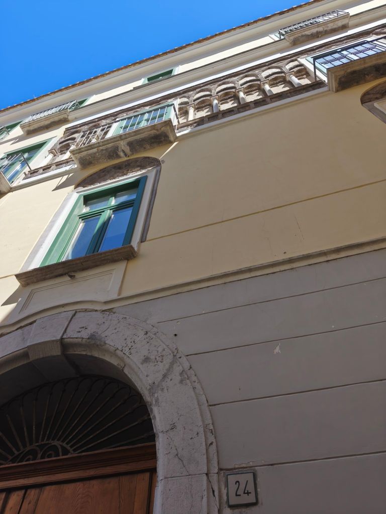 Palazzo Barone è un elegante edificio d’epoca, legato all’antica nobiltà salernitana. La sua struttura richiama l’architettura settecentesca tipica delle dimore aristocratiche: un portale in pietra imponente, balconate in ferro battuto e un’atmosfera che sa di velluti, salotti di altri tempi e conversazioni alla luce delle candele. Oggi il palazzo è abitato e vissuto, in parte ristrutturato, in parte ancora segnato dal fascino decadente tipico di molti edifici storici del sud Italia.