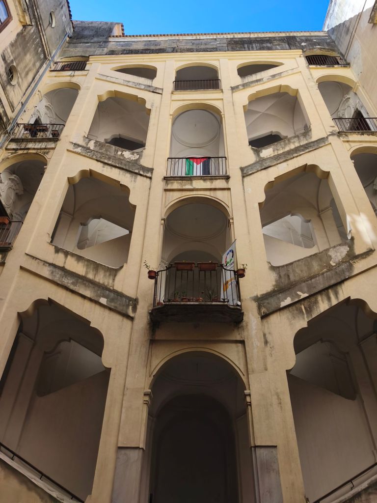 Ogni palazzo ha una storia da raccontare — basta solo fermarsi ad ascoltarla. Passeggiando per i vicoli del centro storico di Salerno, tra scorci medievali e facciate colorate, mi sono imbattuta in un edificio che mi ha subito colpita per la sua raffinata eleganza: il Palazzo Centola. Il Palazzo Centola risale al XVIII secolo ed è uno degli esempi più rappresentativi dell’architettura nobiliare salernitana. Si riconosce subito per il suo portale in pietra lavorata, il grande cortile interno e i dettagli architettonici che parlano di un’epoca in cui eleganza e sobrietà andavano a braccetto. Camminando tra queste mura, è facile immaginare la vita di un tempo: dame affacciate ai balconi, cocchi che entrano nel cortile, voci e profumi che riempiono l’aria. Ogni angolo è intriso di una nobiltà discreta, mai ostentata. Oggi, come tanti palazzi storici italiani, Palazzo Centola è stato parzialmente recuperato e ospita anche attività culturali e sociali. Alcune stanze sono utilizzate per eventi artistici, mostre, incontri letterari e perfino iniziative di quartiere. È bello vedere come un luogo del passato possa ancora essere spazio vivo e contemporaneo.