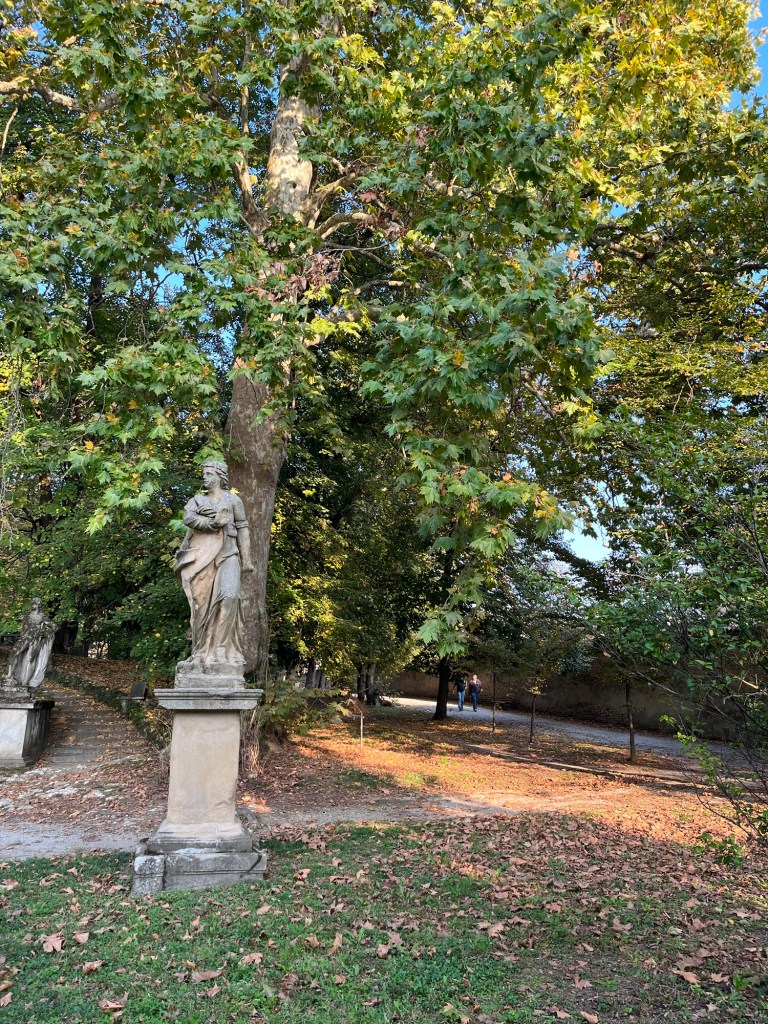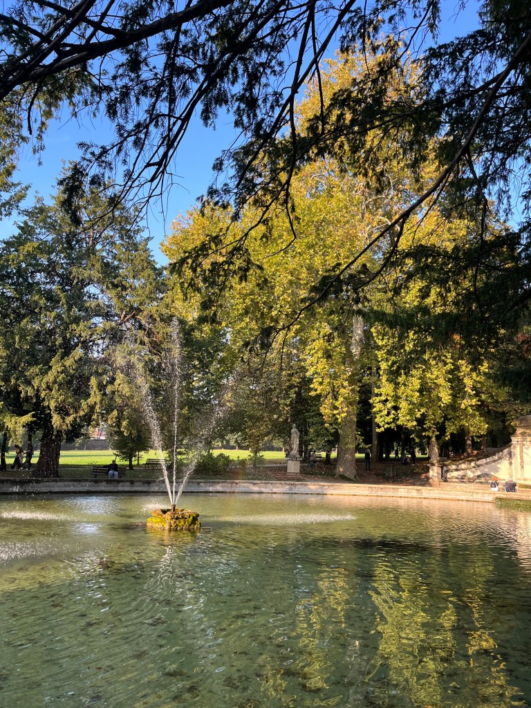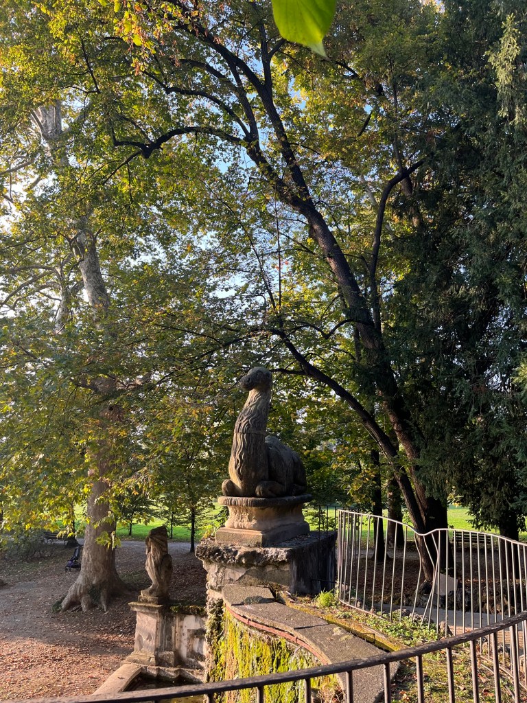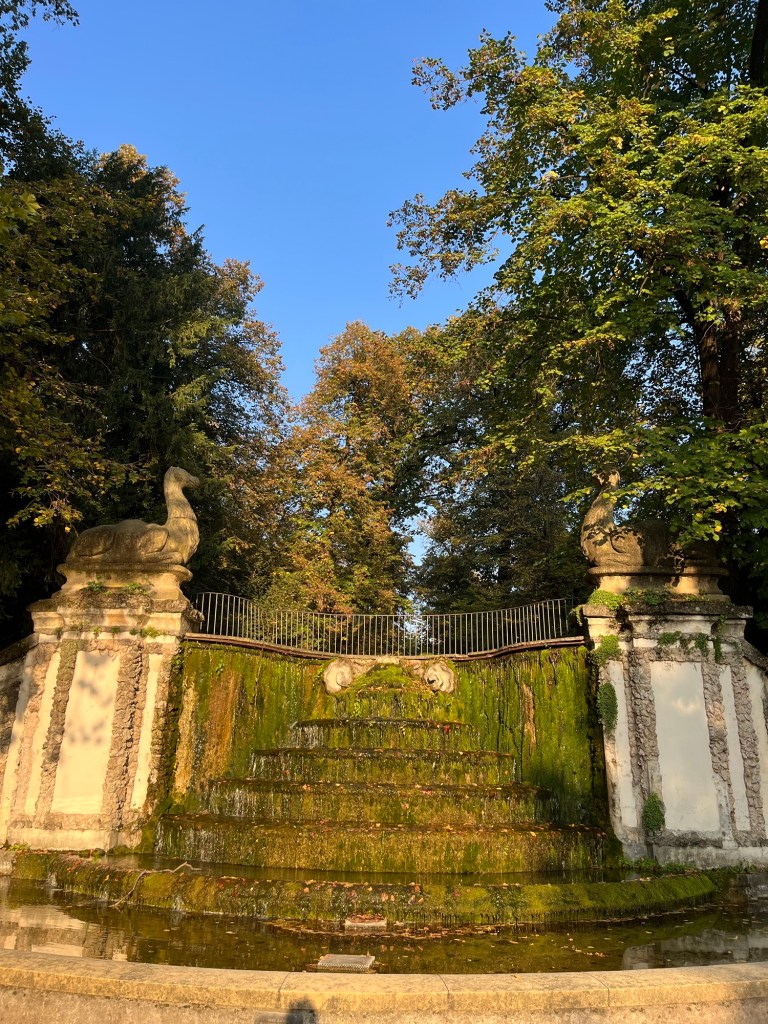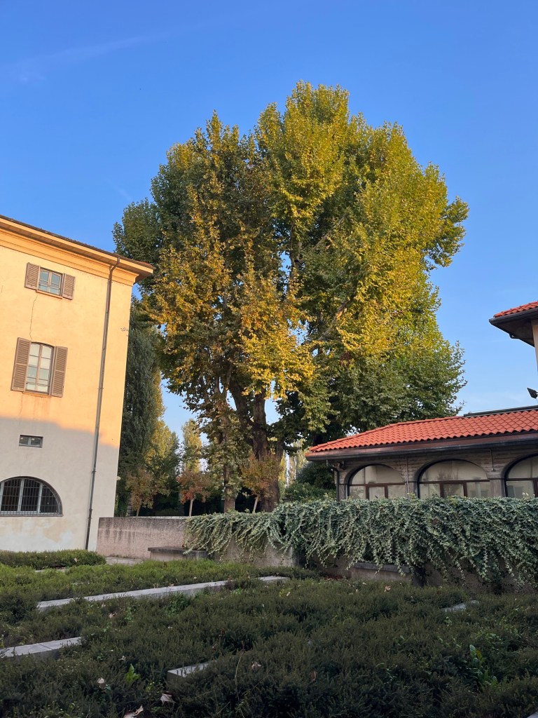 Appena si esce dal palazzo, il Giardino Arese Borromeo si apre come un sipario su un mondo ordinato, elegante, quasi teatrale. Non è solo un “retro” del palazzo: è parte integrante della sua architettura e della sua funzione. Qui si ricevevano ospiti, si passeggiava, si rifletteva… e si mostrava il proprio gusto e la propria cultura. Voluto da Bartolomeo III Arese nella seconda metà del Seicento, il giardino fu pensato come una “continuazione all’aperto” delle sale interne del palazzo. L’ordine e la geometria delle stanze si riflettono nei disegni perfetti delle aiuole e dei viali. Il modello è quello del giardino all’italiana: razionale, geometrico, progettato secondo i principi del Rinascimento e del primo Barocco, dove la natura è domata e al servizio dell’uomo. Oltre il giardino formale si estendeva un grande parco di caccia, secondo la moda delle grandi residenze aristocratiche europee. Anche se oggi non è più integro, si possono ancora vedere i resti del viale prospettico, che si allineava perfettamente con la facciata posteriore del palazzo. Questa prospettiva lunga e rettilinea serviva a “guidare lo sguardo” e a simboleggiare il controllo del nobile sul territorio.