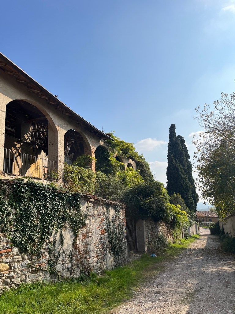 Una volta finito il Viale dei Cipressi, mi sono ritrovata davanti al Castello Crivelli che, purtroppo, non é visitabile. Ora é tutto transennato e presenta segni di degrato, come la zona circostante, ed é un vero peccato perché é al centro di un bel percorso pedonale che attira molti turisti camminatori ogni fine settimana. Le sue origini risalgono al 1026 come borgo fortificato, per trasformarsi nei secoli in raffinata villa nobiliare ad opera della famiglia Crivelli. Il complesso custodisce tracce medievali, affreschi rinascimentali, un elegante portico neoclassico e un imponente viale di cipressi che ne accentua la scenografia. Nonostante lo stato di conservazione complesso, resta uno dei riferimenti storici e paesaggistici più suggestivi della zona.