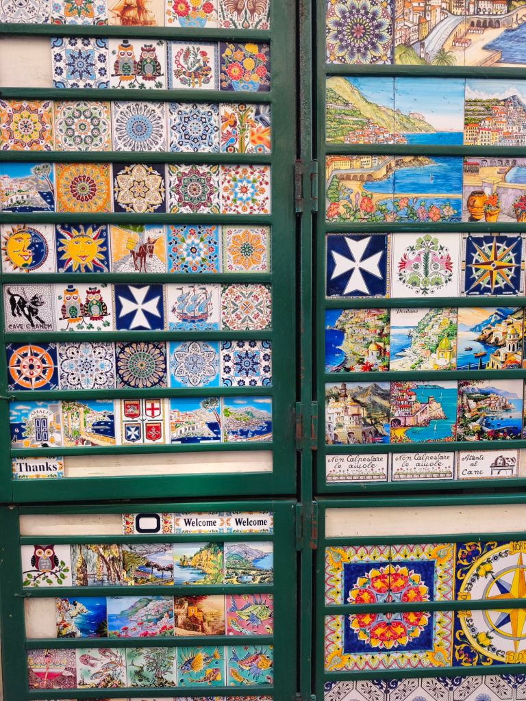 Le maioliche di Lieto non sono solo ceramiche, ma storie dipinte su smalto. Ogni piastrella racconta un pezzo di Mediterraneo: il blu profondo del mare che lambisce la costa, il giallo dei limoni che pendono dai rami, il verde brillante degli agrumi e delle viti. Sono colori vivi, che sembrano assorbire il sole e restituirlo in riflessi dorati. Camminando tra le opere di Lieto, percepisci la pazienza e la maestria necessarie per creare una maiolica. Ogni disegno è tracciato a mano libera, poi colorato con smalti naturali e cotto nel forno fino a diventare lucente e immortale. Non ci sono due piastrelle uguali: ognuna ha una piccola imperfezione, un gesto umano che le dà vita. Le decorazioni spaziano dai motivi geometrici tipici dell’arte araba e bizantina, ai disegni floreali e paesaggistici, fino a scene che raccontano la vita quotidiana amalfitana: barche al porto, contadini nei limoneti, santi e simboli religiosi che guardano silenziosi dal muro di una chiesa o di una casa. Osservandole, sembra quasi di sentire il suono del mare e il vento tra gli alberi, come se la ceramica non fosse solo colore, ma memoria tangibile della Costiera. Le maioliche di Lieto non servono solo a decorare: raccontano la luce di Amalfi, la sua storia, la sua vita quotidiana, trasformando ogni parete in un piccolo racconto.