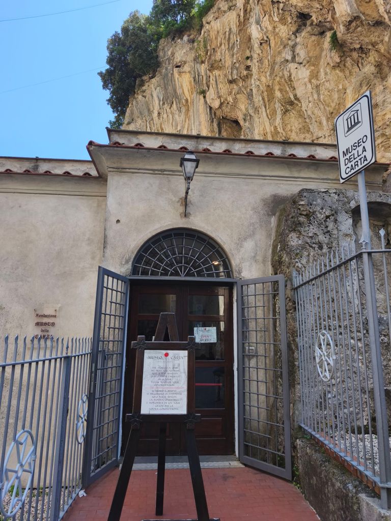 Entrando, ti accoglie un silenzio lieve, rotto solo dal gorgoglio dell’acqua che continua a scorrere sotto il pavimento. Le mura sono spesse, di pietra viva, e l’aria ha un profumo particolare: un misto di fibra di lino, legno antico e umidità. Non sei in un museo qualsiasi — sei dentro una cartiera del XIII secolo, una delle tante che un tempo punteggiavano questa valle, quando Amalfi non era solo potenza marinara, ma anche culla della carta in Italia. Sotto le volte basse, illuminate da una luce morbida, si trovano le antiche macchine: le pile a magli, i torchi, le vasche in cui si impastavano stracci di lino e cotone per creare la “pasta” della carta. Ogni strumento sembra ancora vivo. I magli di legno pendono come braccia gigantesche pronte a sollevarsi; il torchio, immobile, conserva la forza di mille pressioni; e l’acqua che scorre, la stessa che muoveva le ruote secoli fa, continua a sussurrare la sua musica. Una guida ti mostra come nasceva un foglio: la poltiglia che si raccoglieva con il telaio, il gesto lento di chi la immergeva e la sollevava con cura, lasciando colare l’acqua fino a ottenere una sottile trama bianca. Poi l’asciugatura, la pressatura, la levigatura con pietre lisce. Ogni foglio era una piccola opera d’arte, e quando lo si teneva in mano, si poteva intravedere la filigrana amalfitana, segno di qualità e orgoglio. Camminando tra quegli antichi macchinari, ti sembra di sentire il battito ritmico dei magli e il vociare degli artigiani che lavoravano al ritmo dell’acqua.