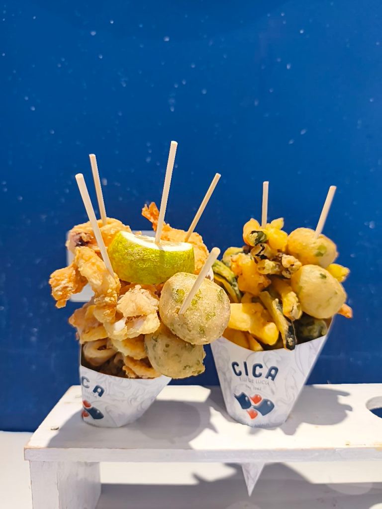 Per pranzo mi sono fermata da Cica, la pescheria in via Pietro Capuano. Io ho assaggiato due cuoppi diversi e li ho trovati davvero buoni. Si può scegliere se mangiarli lì, nei pochi posti a sedere, oppure portarsi il cuoppo in giro e mangiare camminando.