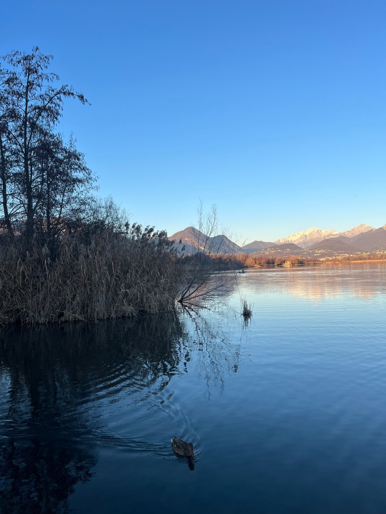 Sono venuta qui per fare qualche foto e per leggere l’ultimo libro dell’anno. Questo angolo di paradiso, secondo me, é un meraviglioso angolo in terra comasca. Non é confusionario come potrebbe essere il Lago di Como, ma qui ci si può attrezzare per passare una giornata di svago e relax grazie alla grande zona verde adiacente al lago e ai tavoli dove ci si può mettere per mangiare, leggere, studiare o anche lavorare all’aperto.