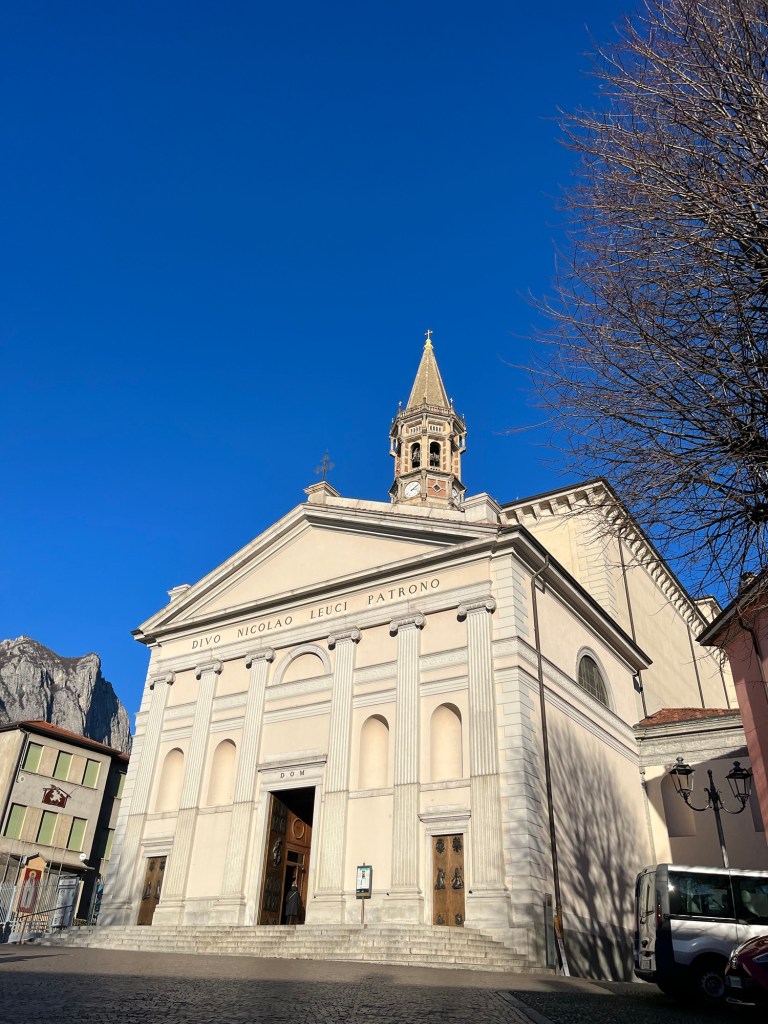 La Basilica di San Nicolò è il principale luogo di culto cattolico di Lecco, situata vicino al lungolago di Piazza Cermenati. È dedicata a San Nicolò, patrono dei naviganti, pescatori e commercianti, ruolo che riflette la lunga tradizione lacustre della città. La chiesa ha origini antichissime: sul sito esisteva una primitiva struttura già dall’XI secolo e viene menzionata nei documenti dal 1252. Nel XIX secolo, l’architetto Giuseppe Bovara l’ha trasformata nello stile neoclassico che vediamo oggi, completando anche la grande volta interna e la facciata. Dietro alla basilica, si può vedere il Campanile di San Nicolò, soprannominato il campanile a matitone.