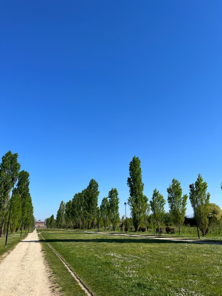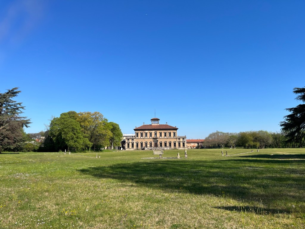 L’accesso alla villa è parte integrante dell’esperienza. Si percorre un lungo viale progettato dall’ingegnere Domenico Laveni, fiancheggiato da oltre duecento pioppi.