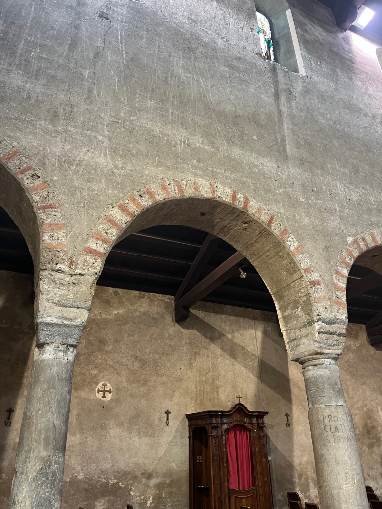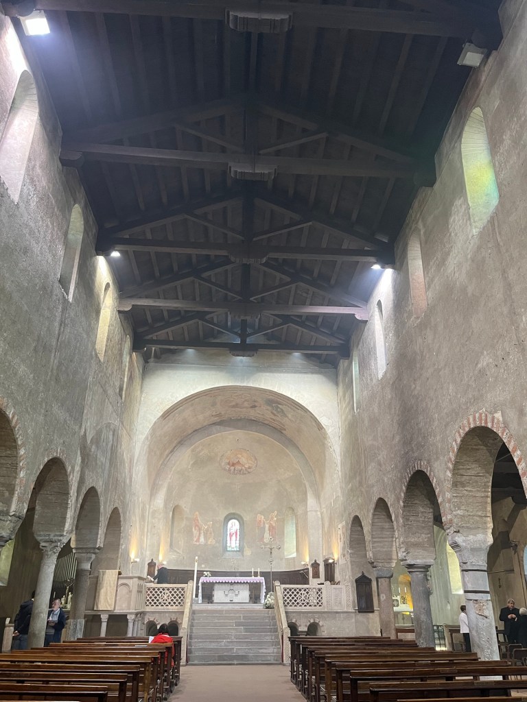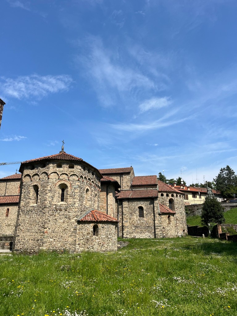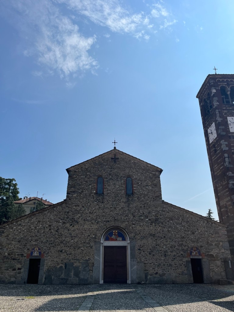 La sua origine risale all’XI secolo, anche se il sito possiede radici ancora più antiche. La basilica sorge infatti su un’area di culto precedente e testimonia la lunga continuità religiosa di questo angolo di Lombardia. L’edificio mostra con chiarezza i caratteri del romanico lombardo: linee essenziali, volumi armoniosi, murature in pietra e mattoni, decorazioni sobrie che affidano la bellezza soprattutto all’equilibrio delle proporzioni.